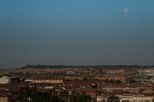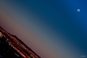 Primeras luces del día con la luna muy alta